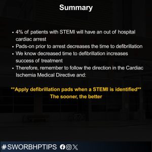 STEMI Positive ECG = Pads On Today on #sworbhptips we are reviewing the reason why pads need to be on when there is a STEMI positive ECG. By Melanie Ruthven|2026-03-25T11:12:54+00:00March 25, 2026|Uncategorized|0 Comments Share This Story, Choose Your Platform! FacebookTwitterRedditLinkedInWhatsAppTumblrPinterestVkXingEmail About the Author: Melanie Ruthven Related Posts Prehospital Pelvic Binder Prehospital Pelvic Binder
