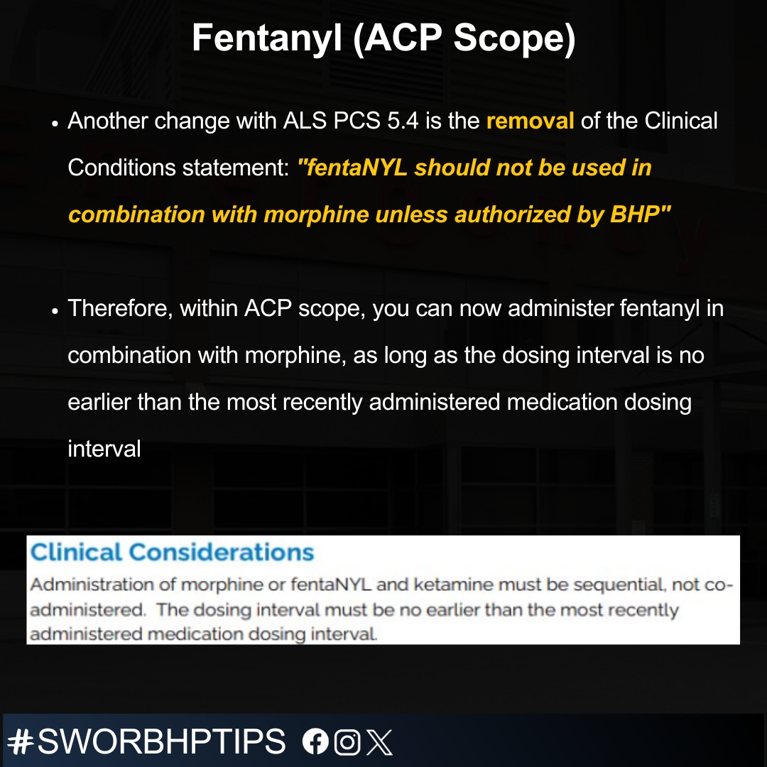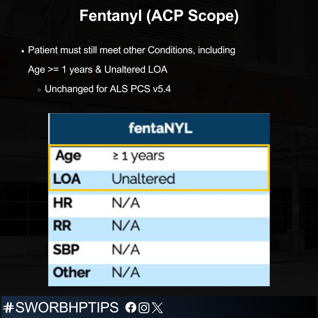 • In the ALS PCS v5.4 Fentanyl Conditions have changed to allow administration without the Normotension requirement